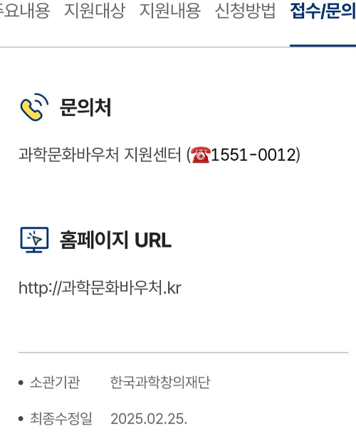 과학문화 바우처 지원센터 전화 문의: 1551-0012